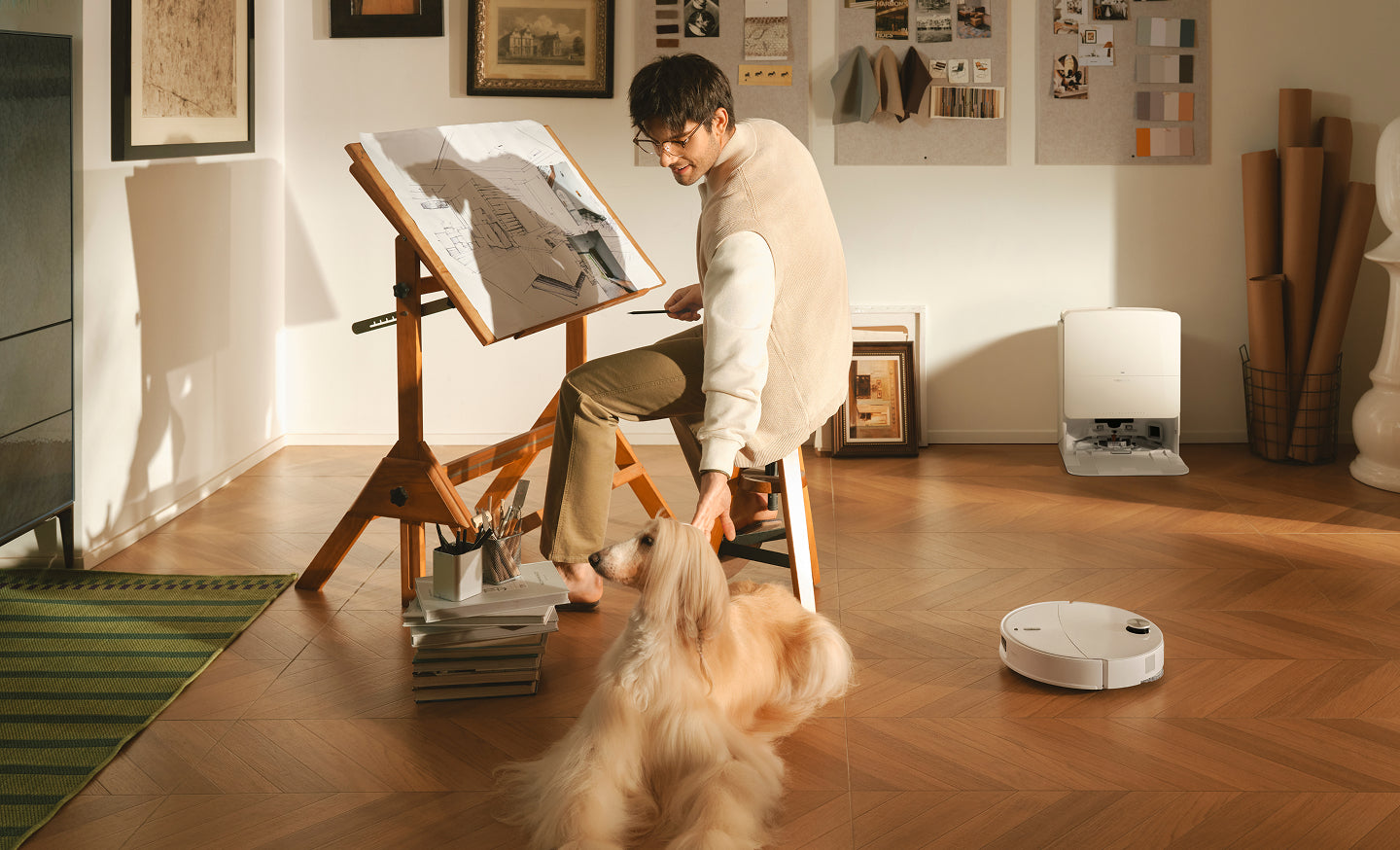 Ei tarvetta siivota ennen puhdistusta. Rakenteelliseen valoon ja RGB-kameraan perustuva järjestelmä havaitsee ja väistää yli 200 erilaista tavallista estettä – sotkuisista johdoista lemmikkien jättämiin yllätyksiin – päivällä tai yöllä.